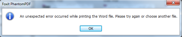После установки не генерирует pdf из файла word. Foxit установлен как принтер по умолчанию. Однако, вылезает ошибка печати.