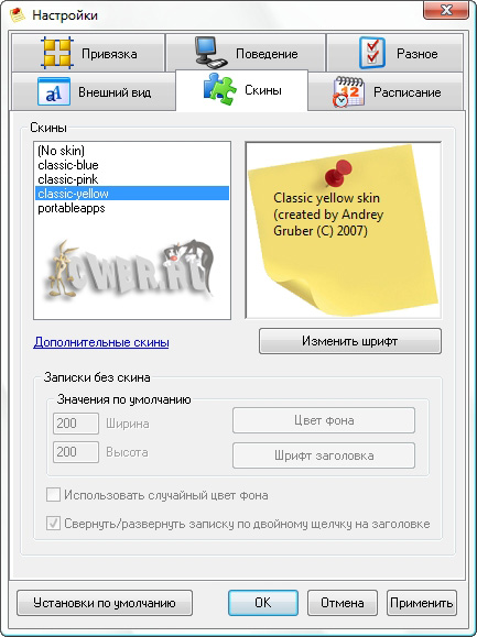 PNotes - популярная программа позволяющая располагать в разных местах Рабочего Стола "клейкие листочки", с напоминанием самому себе или другому пользователю компьютера, что нужно сделать, где что лежит, списка ссылок, найденных сайтов по какой то тематике и т.д. и т.п. Имеется русский, ивритский и ряд других интерфейсов, поддержка скинов.