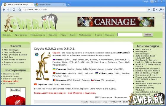 Google Chrome - веб-браузер производства Google с открытым исходным кодом, сочетающий поддержку веб-приложения и удобный поиск с высокой скоростью и стабильностью. В Chrome использованы наработки Apple WebKit и Mozilla Firefox. Из особенностей Chrome разработчики особо выделяют изолированные вкладки, предотвращающие сбой работы программы и обеспечивающие более надёжную защиту от опасных сайтов. Кроме этого, в Chrome реализован новый движок JavaScript V8, который позволит браузеру работать с веб-приложениями нового поколения.