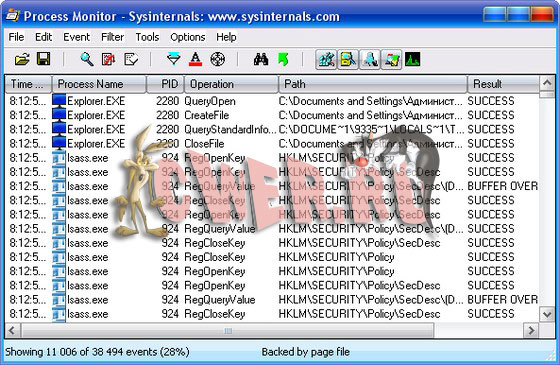 По сути, Process Monitor обьединяет в себе возможности популярных утилит этого же автора: Filemon (мониторинг файловой системы), Regmon (мониторинг реестра) и Process Explorer (мониторинг процессов)...